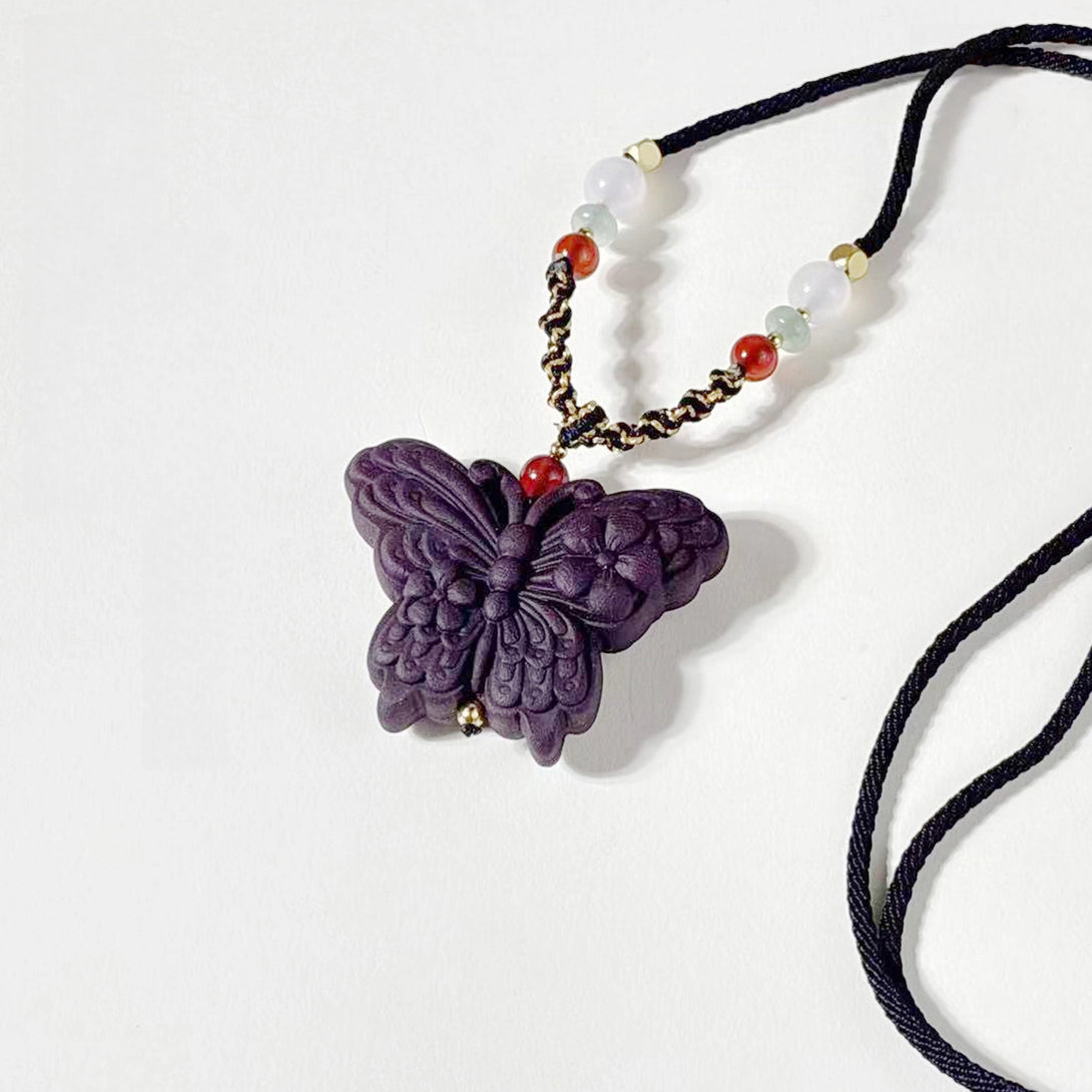Butterfly Pendant | 56×43×16mm | Clears heart-fire & improves sleep | Necklace/car diffuser |