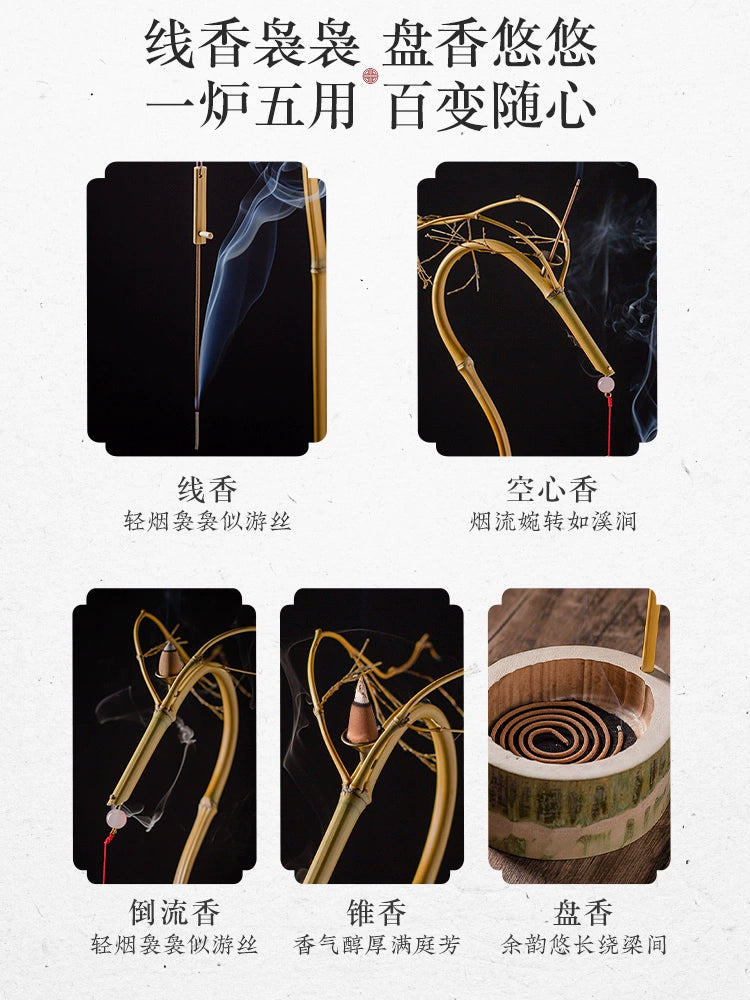 Dragon Incense Holder - Handcarved 5-in-1 Bamboo Incense Burner for Backflow/Stick/Cone Incense