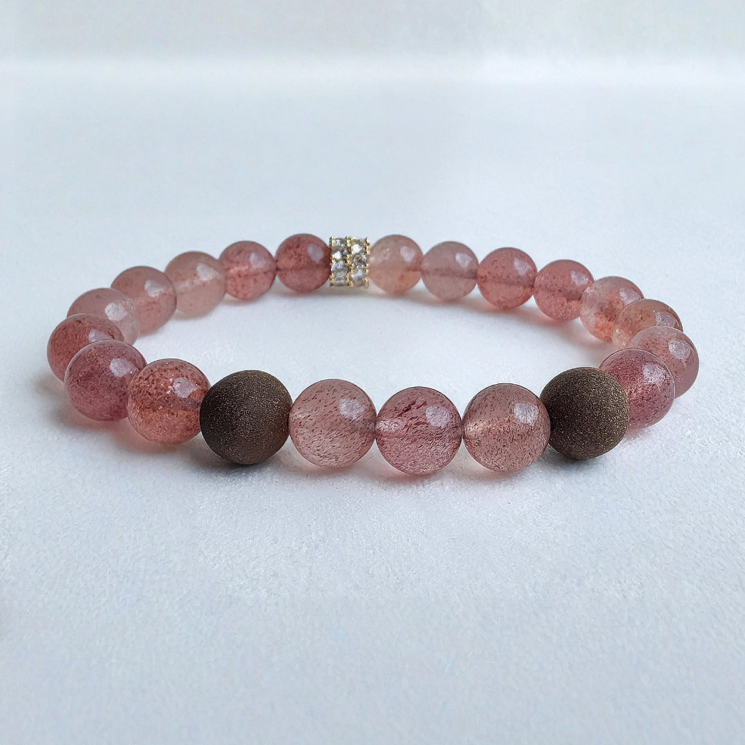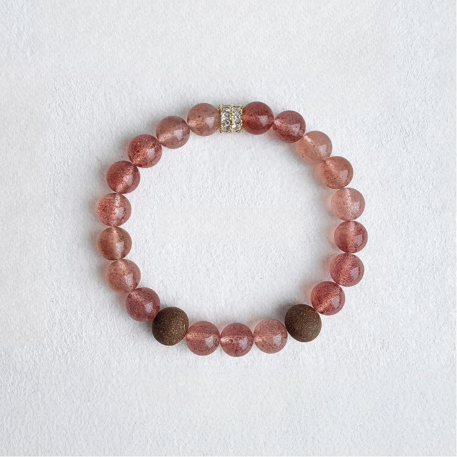 Natural Strawberry Quartz & Herbal Bead Wellness Bracelet – Attract True Love · Enhance Charm · Heal Mind & Body