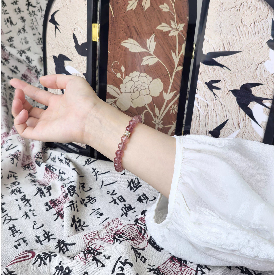 Materials: Natural strawberry quartz + herbal beads + gold-plated zircon.