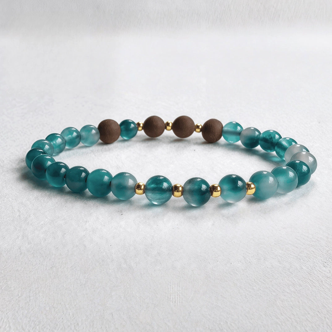 Handpicked natural Grade A icy-type jadeite (6mm round beads) with crystal-clear texture and dreamy blue-green floral patterns resembling distant misty mountains, each bead infused with nature's energy.