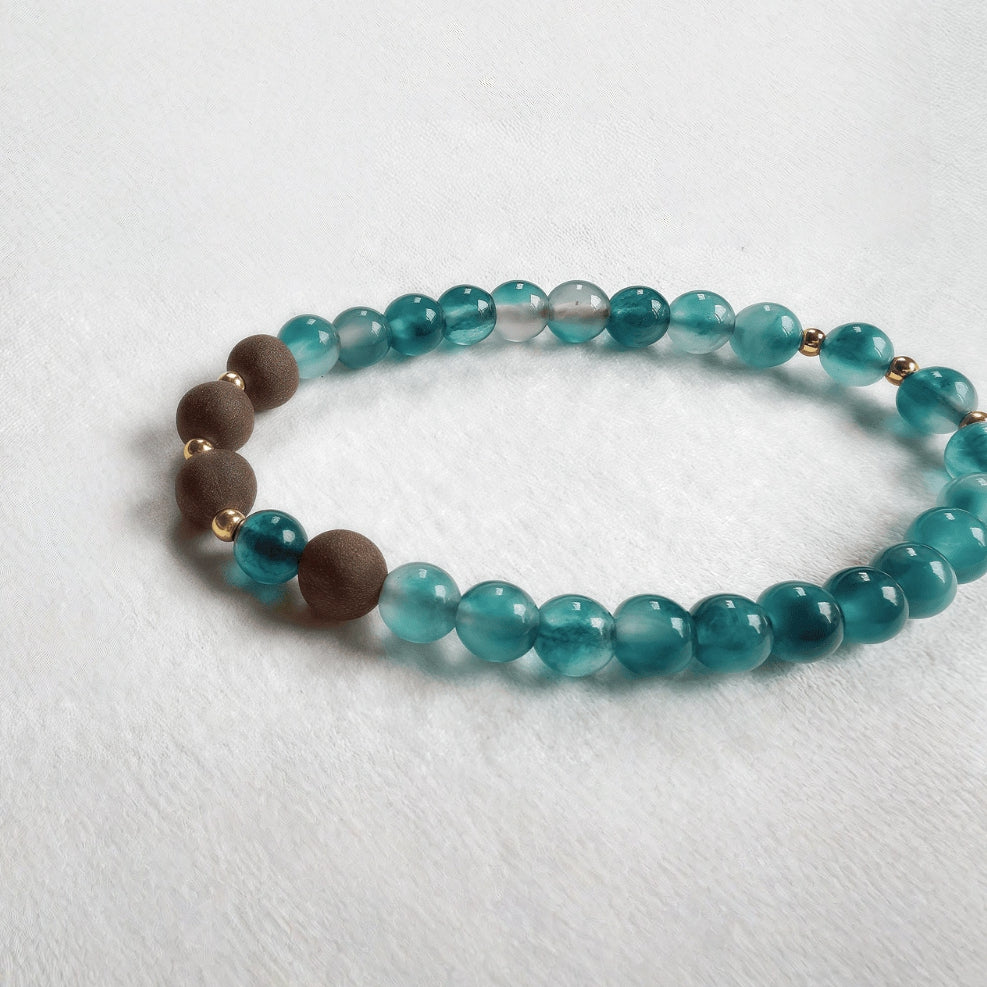 Perfect harmony between jade's cool serenity and herbal beads' gentle warmth, accented with 18K gold-plated spacer beads for understated luxury.